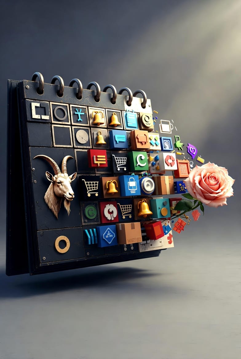 Maintenant, regardez l'étendue du système. Voici votre année, telle que le commerce la voit — un calendrier où chaque case est remplie, chaque mois a son prompt, chaque émotion a sa date d'activation :