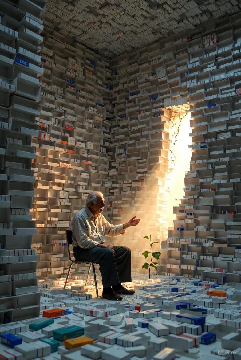 Corps qui lâche, vieillissant — polymédication. Personne ne l'a vu comme un nœud de relations à retisser.