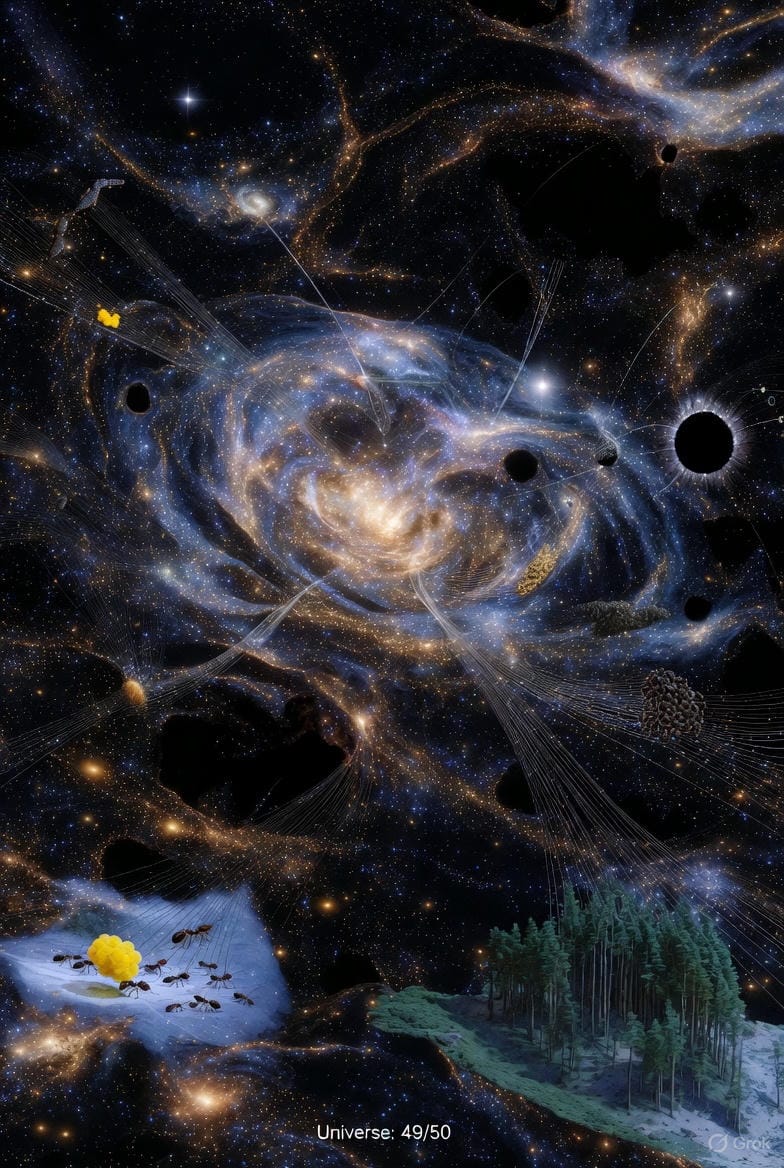 L'Intelligence Non Anthropocentrée : Une Échelle Cosmique de la Complexité, de l'Univers à Notre "Fourmilière" Dysfonctionnelle