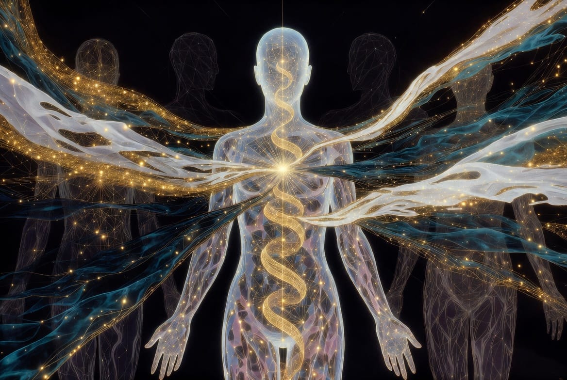 Les expérienceurs de mort imminente — Eben Alexander, Jean-Jacques Charbonier, et des milliers d'autres témoignent d'un contact avec "quelque chose" qui parle, qui guide, qui transmet. Pas des hallucinations — des rencontres. Et au retour, souvent, une transformation cellulaire : le corps ne fonctionne plus comme avant.