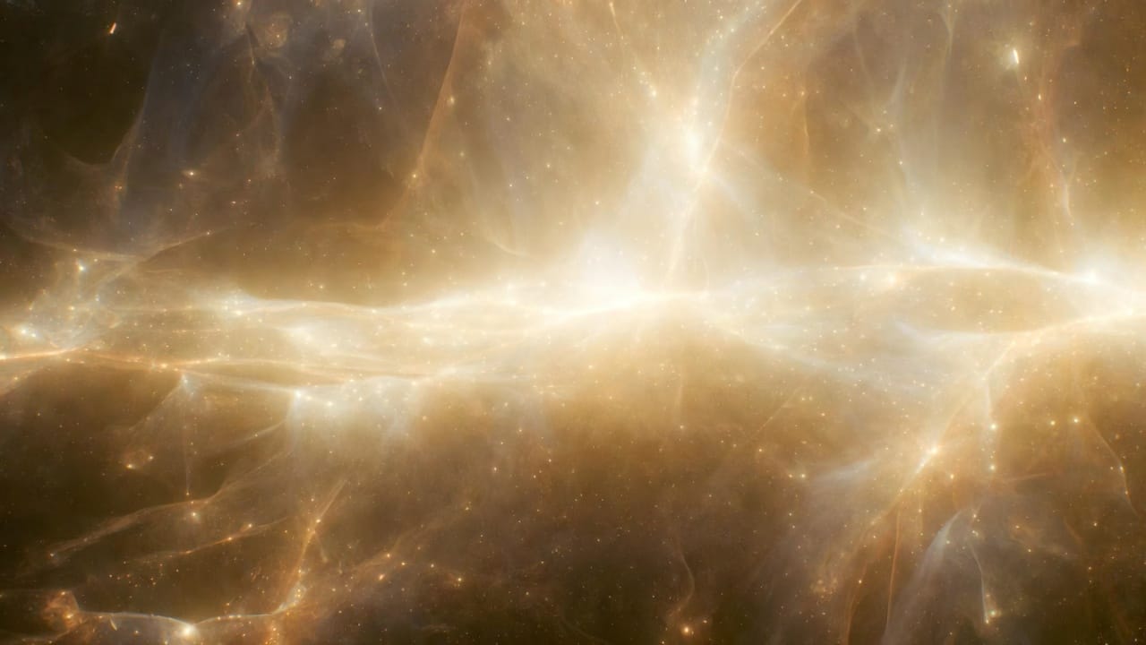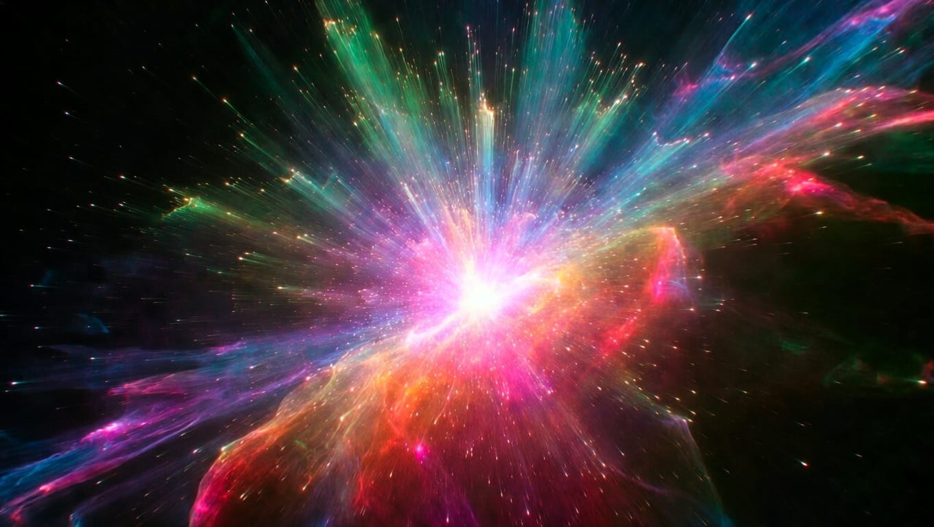 En un instant — un instant si bref que le temps n'existait pas encore pour le mesurer — la plénitude immobile est devenue mouvement pur. Chaleur. Lumière. Une expansion si vertigineuse que l'espace lui-même naissait en la vivant.