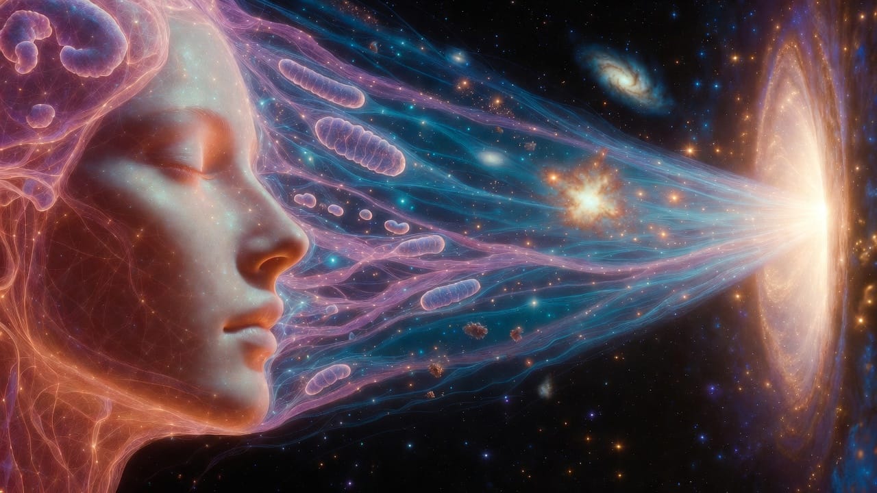 Chaque atome de vous a cette histoire. Chaque cellule porte dans son noyau la mémoire de ce feu stellaire. Vous n'êtes pas dans l'univers. L'univers est en vous. Vous en êtes une expression localement consciente — une façon qu'a eu le cosmos de se regarder avec des yeux.