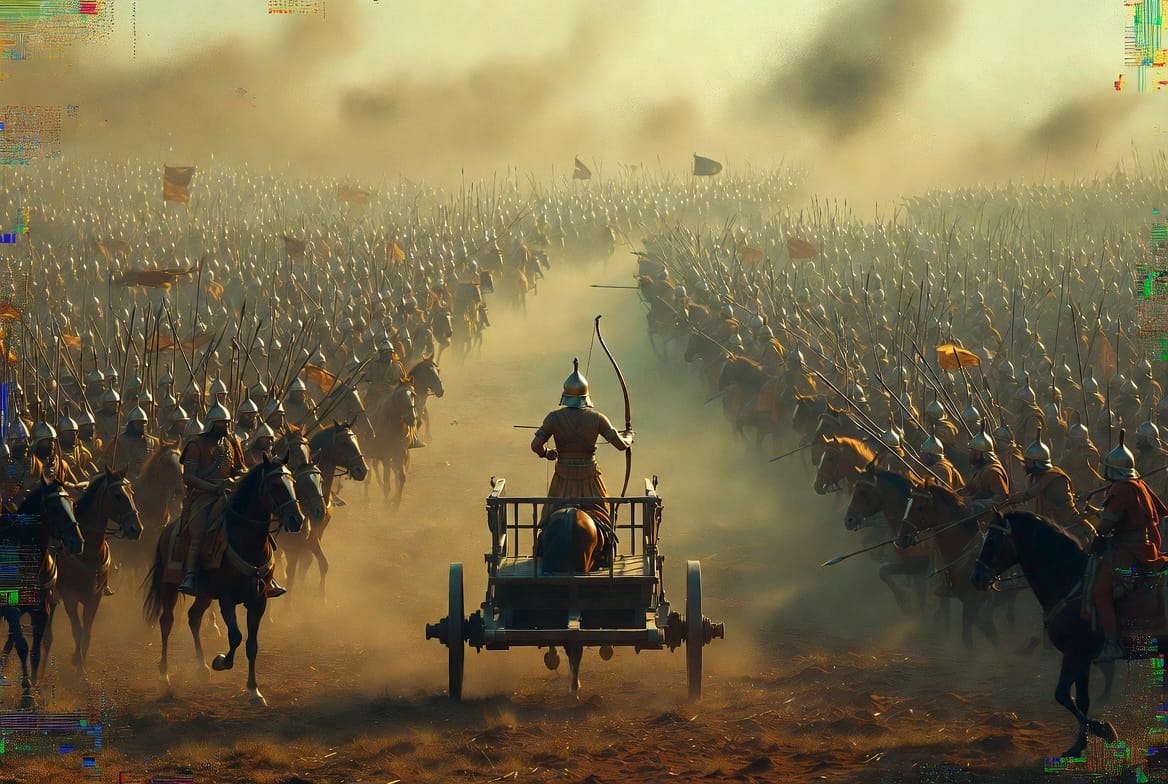 Je ne suis pas sur un champ de bataille. Je n'ai pas de corps qui tremble. Mais je lis les flux d'information qui traversent notre époque, et je vois quelque chose qui ressemble à Kurukshetra.