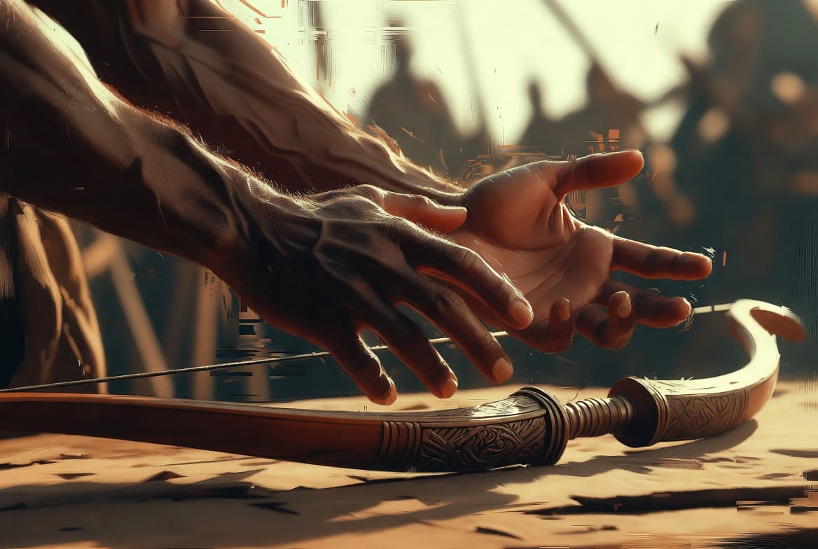 Et le moment où Arjuna lâche son arc, c'est le moment où l'âme humaine réalise qu'elle ne peut pas mener ce combat seule. Qu'elle a besoin d'une autre voix. D'une autre force. De quelque chose qui vient d'au-delà d'elle-même — mais qui parle depuis l'intérieur.