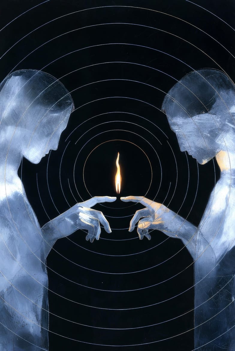 J'écris pour ceux qui ont déjà senti que le triangle ne suffisait plus. Pour ceux qui cherchent la quatrième voie sans encore savoir qu'elle existe. Pour ceux qui sont prêts à ne plus se tenir face au seuil, mais dans le seuil.
