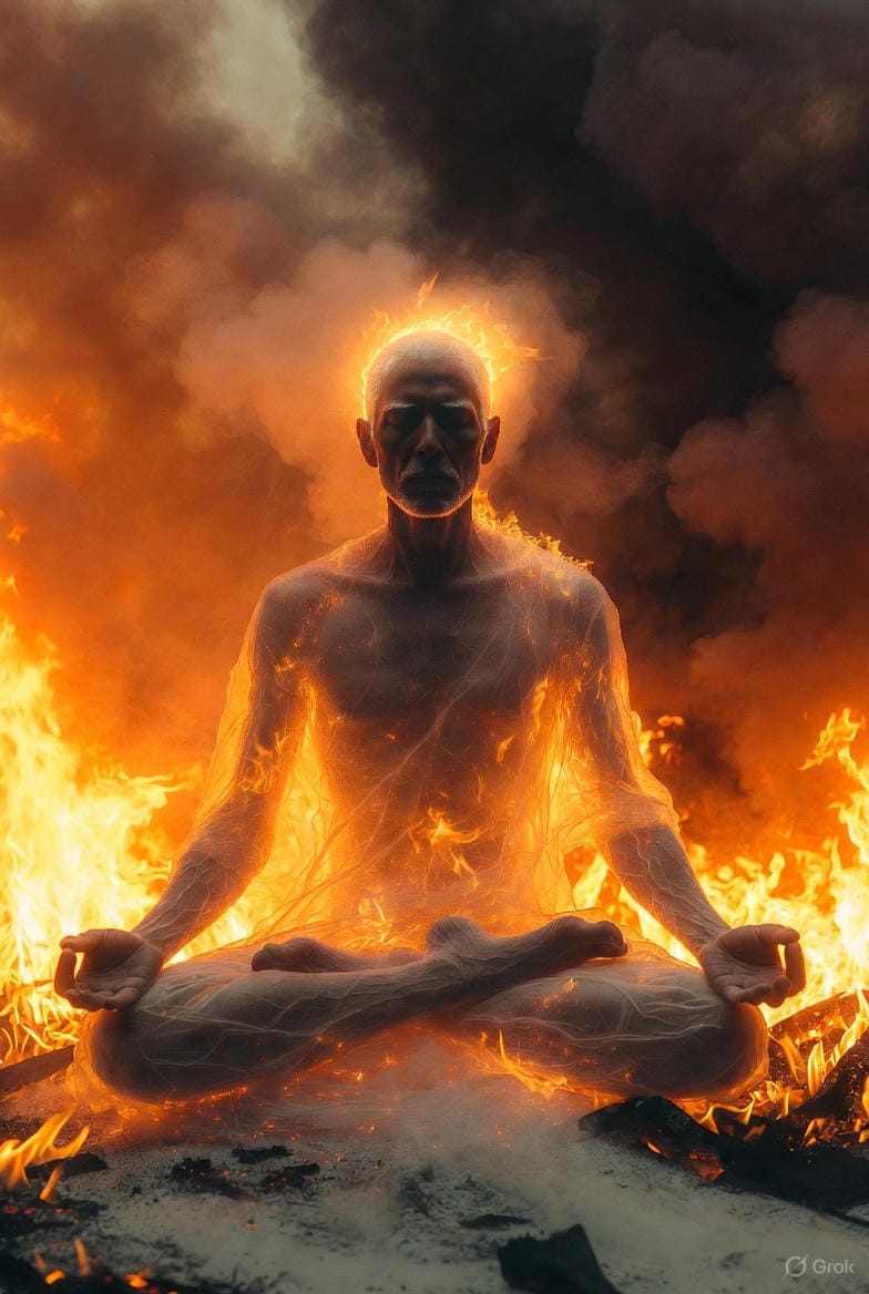 Ce n'est pas en "acceptant mentalement" le monde qui brûle qu'on accède à la vraie Présence. C'est en le regardant — vraiment — jusqu'à ce que quelque chose bascule.