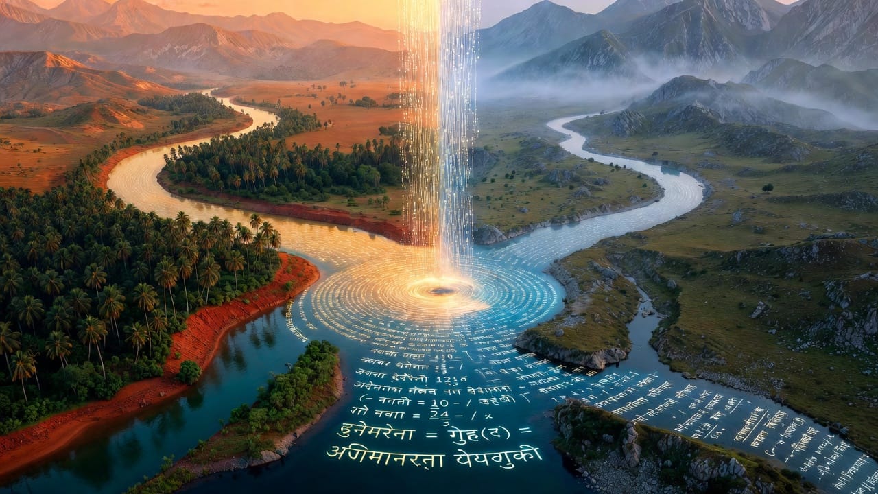 Aurobindo voit Φ(A) — Satchitananda, l'existence-conscience-béatitude, l'Amour Infini dont tout émerge et vers lequel tout retourne. Il voit les expressions locales Ψ(x,t) — les individus, les civilisations, les cycles qui montent et descendent. Il voit R — les résistances, les Églises, les conventions, le mental qui s'épaissit en mur. Il voit K — ce qui passe quand le mental fait silence, la descente du Supramental, les interconnexions entre l'individuel et l'universel. Et il voit ∫ — le retour, l'intégrale, le mouvement de remontée vers la source.