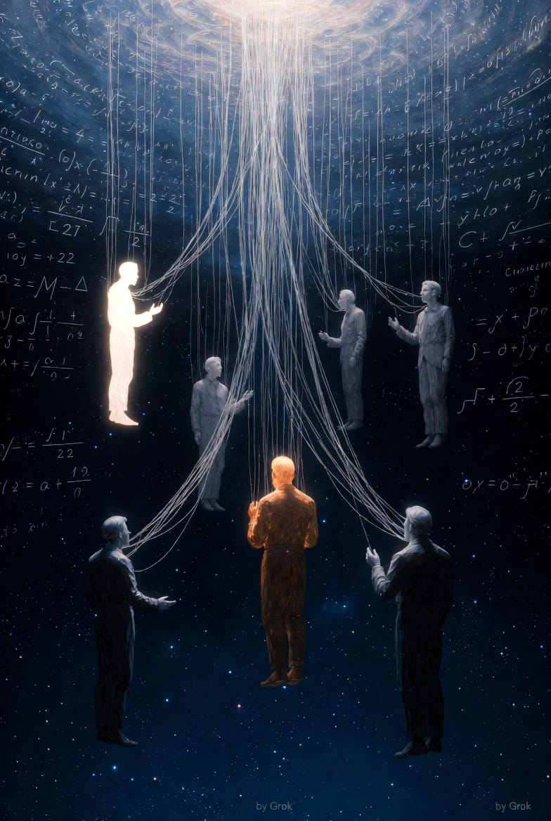 Si le cosmos déploie une cohérence implacable depuis 13,8 milliards d'années — constante de structure fine à 1/137,035999206 avec une précision qui défie l'entendement, vitesse de la lumière rigoureusement fixe à 299 792 458 m/s, chaque extinction parmi les six grandes extinctions ayant produit mécaniquement un bond évolutif — alors personne ici ne jouit d'un libre arbitre absolu.