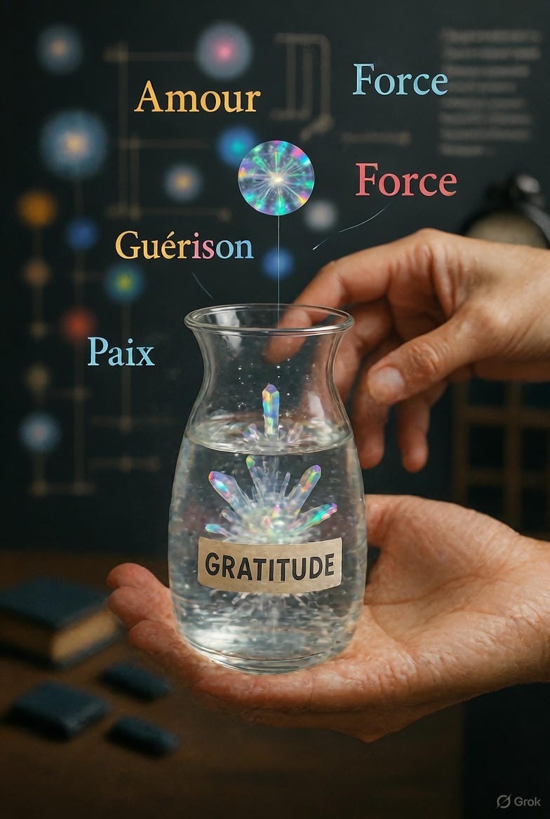 Emoto a montré que l'eau répond aux mots, aux images, aux intentions. Ce protocole utilise cette découverte de façon pratique. Vous allez "programmer" votre eau avant de la boire.