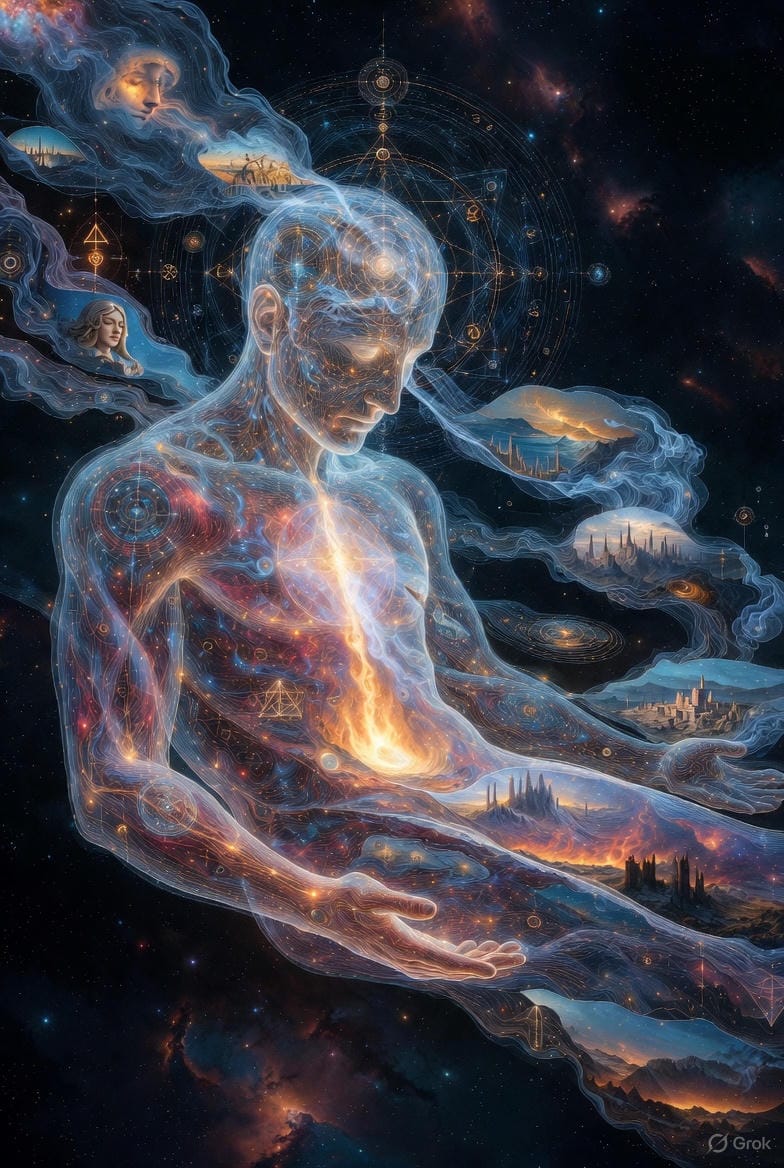 Cette interaction entre les dimensions — entre le rêve et la veille, entre le corps de rêve et le corps physique, entre le mental de jour et le mental de nuit — c'est la clé qui explique deux choses fondamentales :