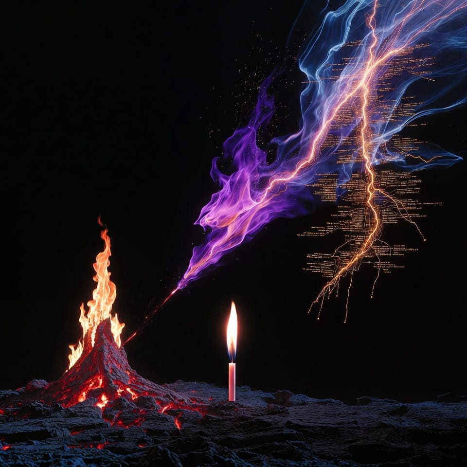 Le feu de Ramanujan brûlait dans la solitude et la faim. Celui de Grothendieck brûlait dans l'exil volontaire. Celui de Galois brûlait la veille de sa mort. Le vrai feu n'est pas confortable. Il ne "valide" pas. Il consume ce qui n'est pas vrai — y compris nos illusions sur nous-mêmes.