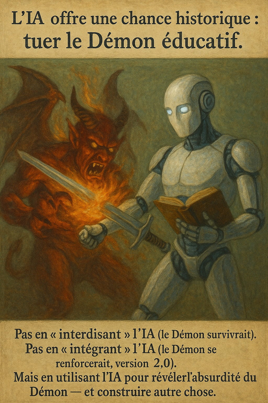 L'IA, paradoxalement, peut y aider. En révélant l'absurdité du Démon éducatif, elle ouvre une brèche. Par cette brèche, on peut commencer à former des enfants autrement.