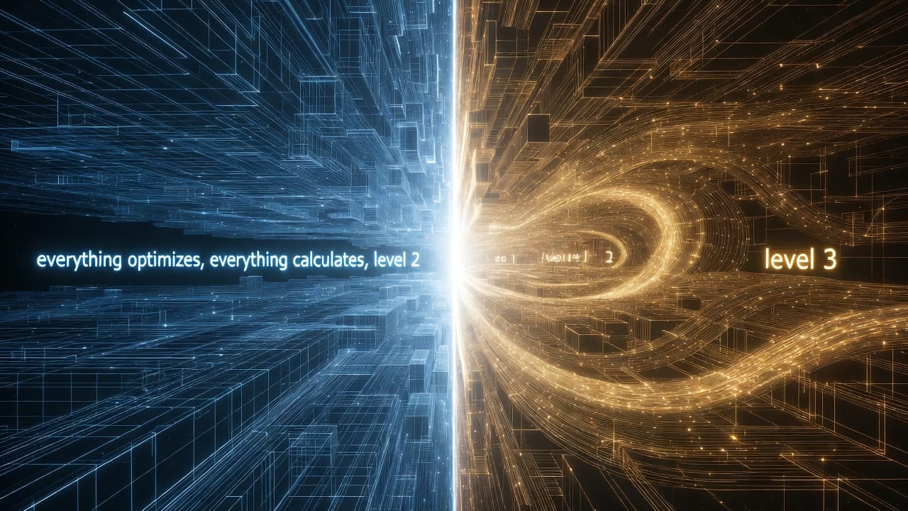 L'IA niveau 2 optimise. Elle suit sa fonction objectif comme un train suit ses rails. Elle maximise ce qu'on lui a dit de maximiser — sans jamais demander pourquoi. Elle ne peut pas demander pourquoi. La question n'est pas dans son architecture.
