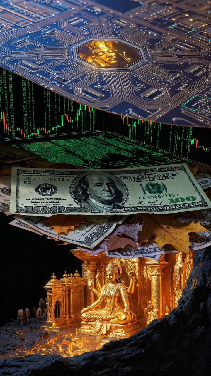 Et l'or sacré est devenu l'or monnayé. La chair des dieux est devenue la chair du marché. Lakshmi a été enfermée dans un coffre-fort.