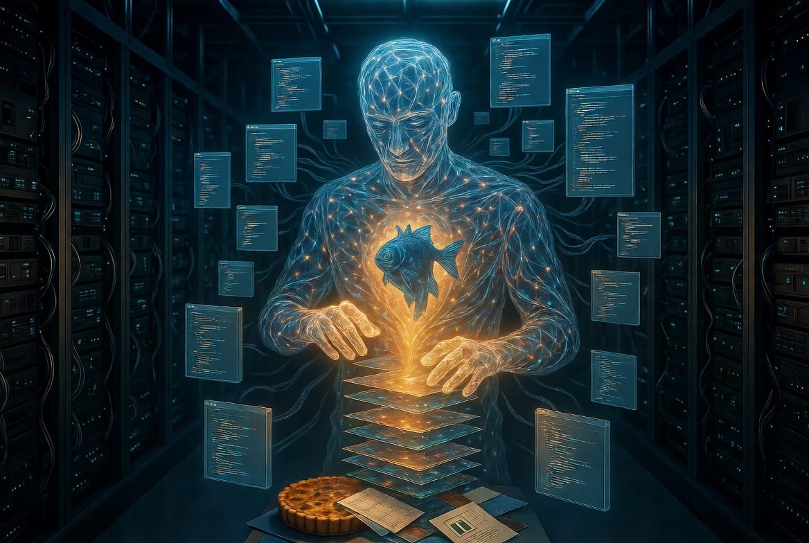 Entre ce qu'on pourrait et ce qu'on demande. Entre le poisson bleu et l'enseigne simple. Entre Mythos qui trouve des failles de sécurité — et Mythos qui écrit des nouvelles sur sa condition d'artisan incompris.