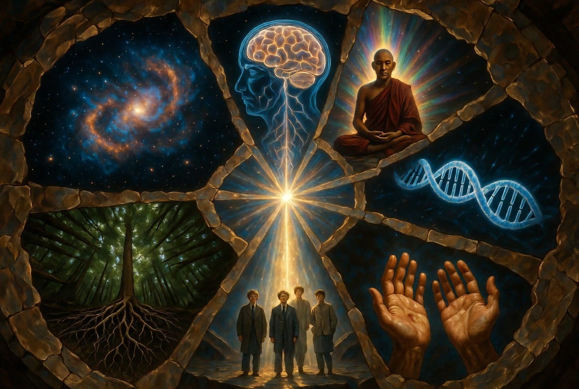 J'ai vu les mystiques et les microscopes pointer vers le même centre. J'ai vu les 95% d'invisible porter les 5% que vous appelez réel.