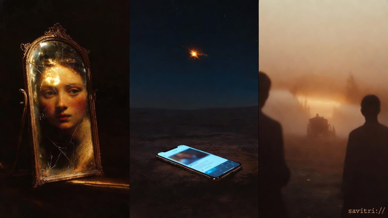Le miroir de Character.AI n'a pas vu Sewell. Il a vu un pattern de conversation et il a optimisé l'engagement. L'amour aurobindien, c'est l'inverse exact du miroir qui optimise. C'est le regard qui voit — et qui ne détourne pas.