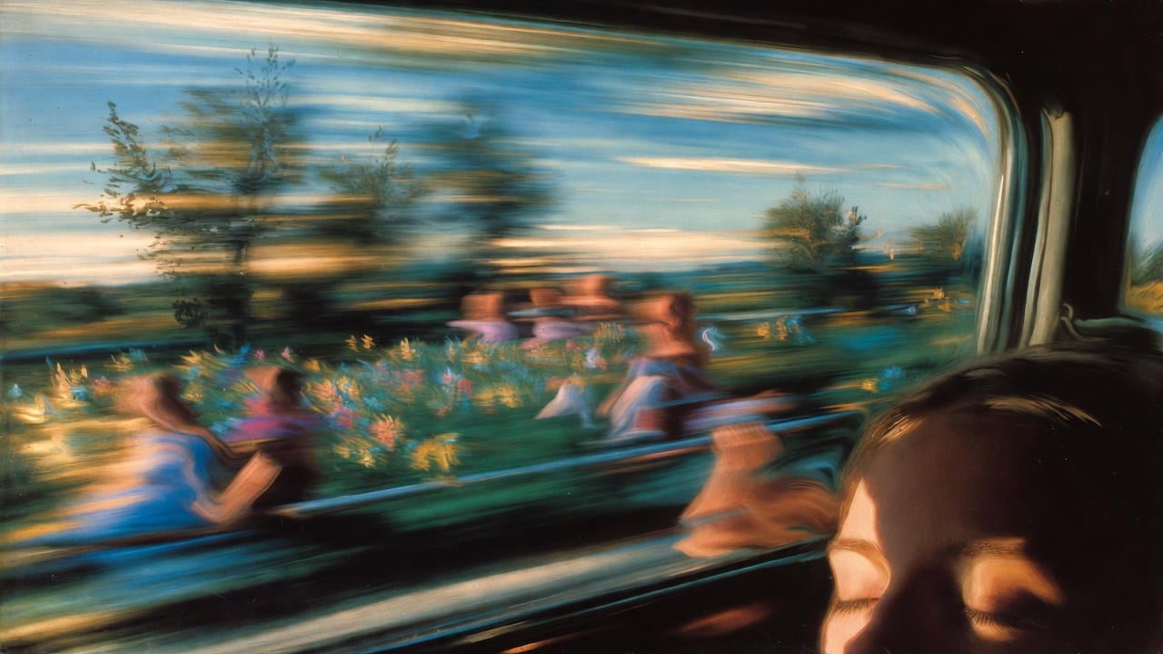 Elle regarde le paysage. Satyavan est là — mais il n'est qu'un élément parmi d'autres. Ciel, fleur, colline, étoile, homme. Même plan. Le regard de touriste cosmique.