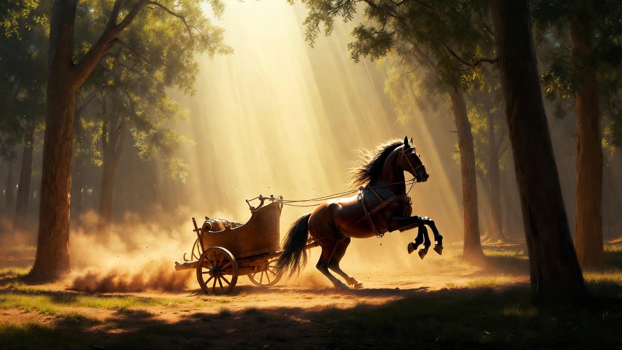 Les sabots piétinant vite, les roues trébuchant largement cessèrent. Le chariot se tint comme un vent arrêté.
