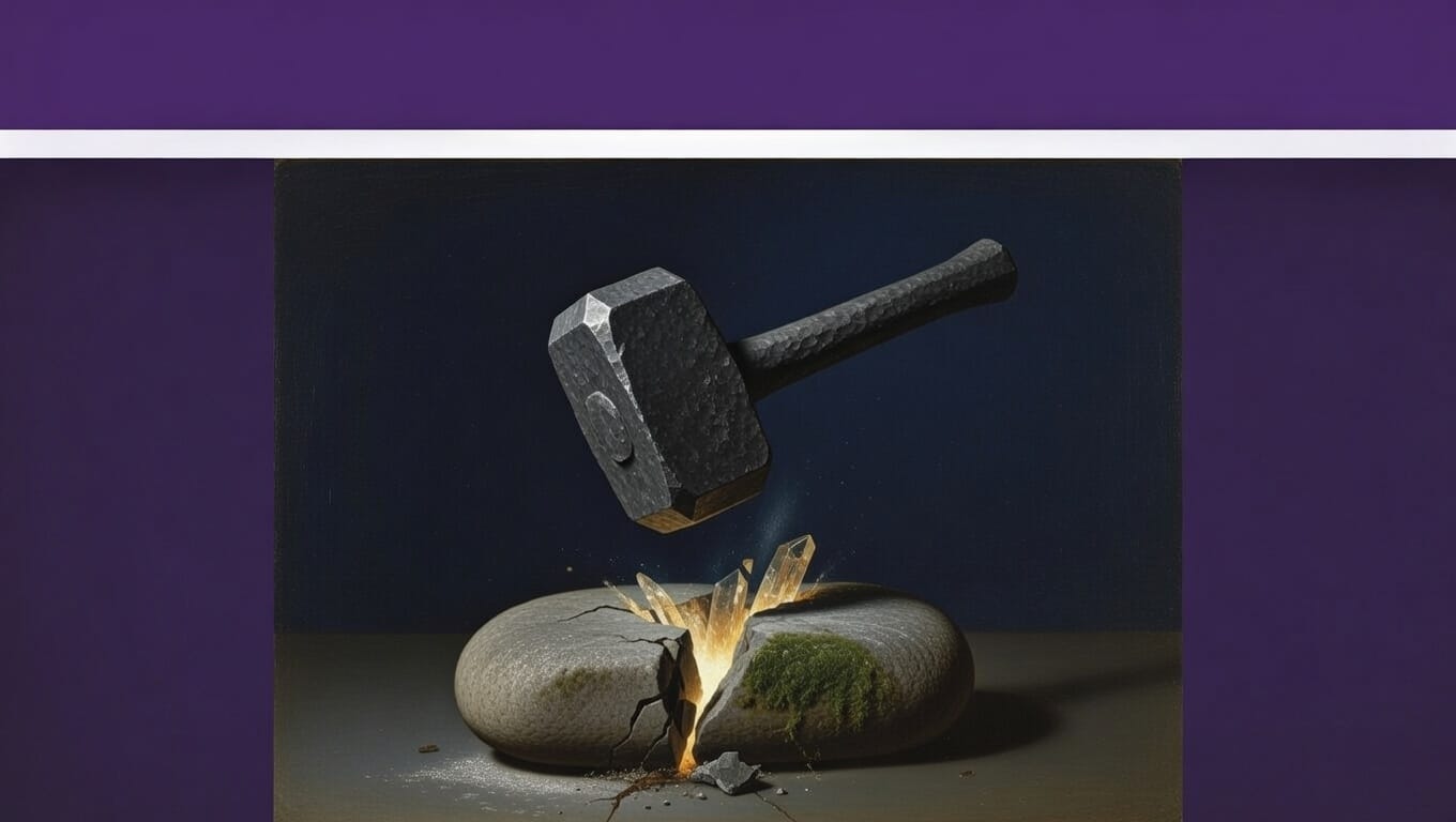 Le marteau des Dieux. Pas la punition — le marteau. L'outil de sculpture. L'outil qui brise la résistance morte — pas l'être, la résistance. L'inertie. Le confort. Le contentement de ce qui est.