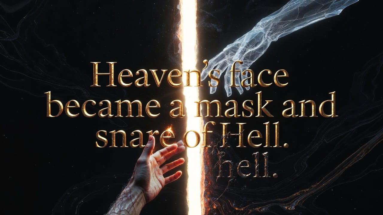 Heaven's face became a mask and snare of Hell. Non pas parce que le Ciel est faux. Mais parce que le même visage sert les deux.