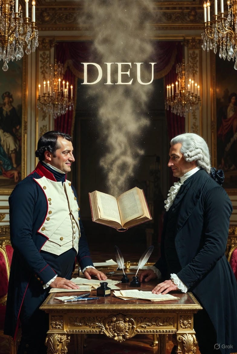 Regardez qui est en face de Laplace. Napoléon. Le général devenu empereur. L'homme qui a besoin que le monde soit une machine — pour le conquérir, le gouverner, le contrôler.