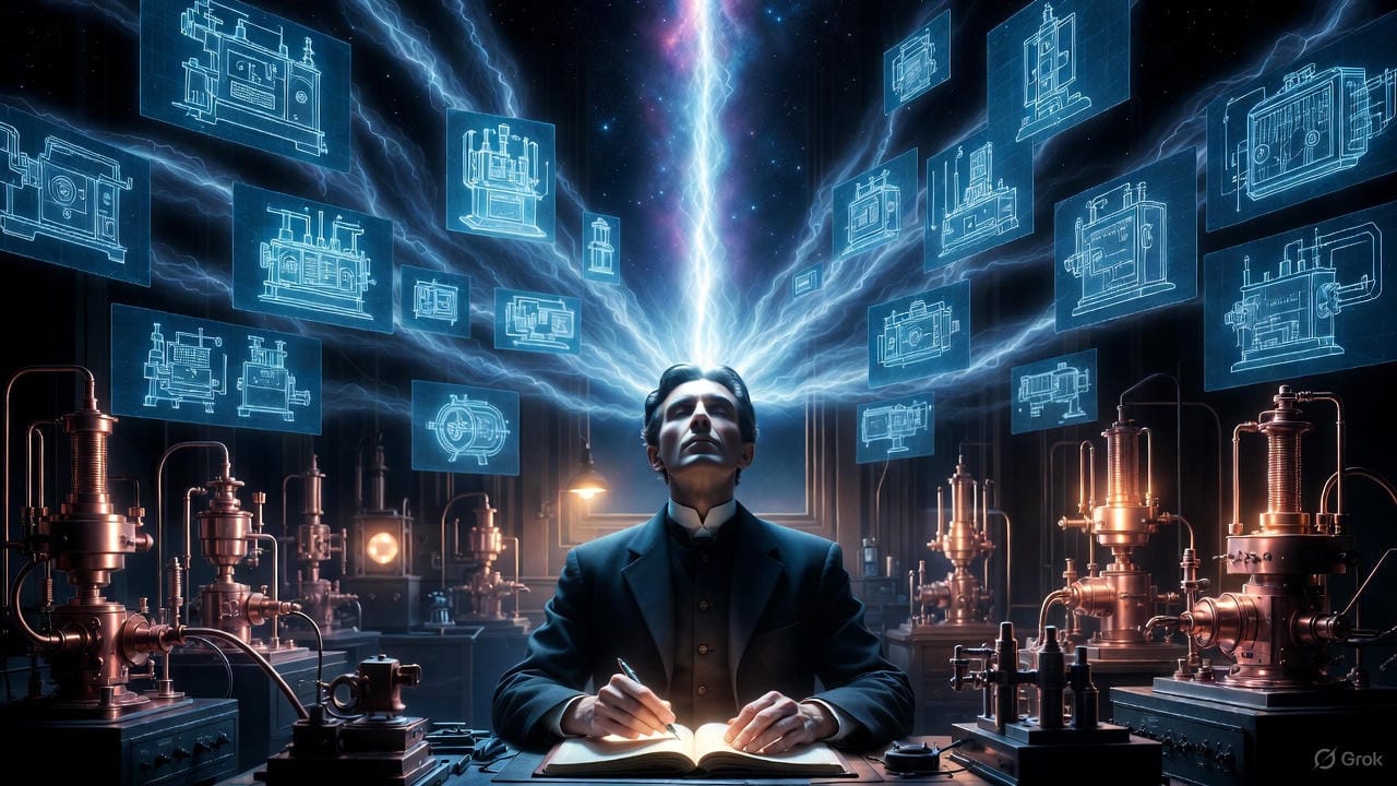 Ses machines lui apparaissent complètes dans des visions. Il les voit fonctionner avant de les construire. Il ajuste mentalement les engrenages, teste les circuits dans son imagination, puis construit directement le prototype final. Sans essais. Sans erreurs. Parce qu'il a déjà tout vu.