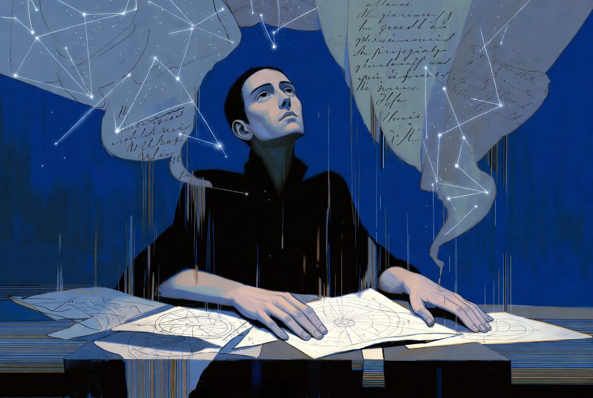 Nostradamus appartient à cette lignée. Pas parce que ses quatrains seraient des prédictions exactes — la plupart sont opaques, polysémiques, impossibles à vérifier. Mais parce qu'il incarne une posture : celle de l'humain qui accepte que le réel le dépasse et qui note ce qui traverse sa conscience sans prétendre le commander.