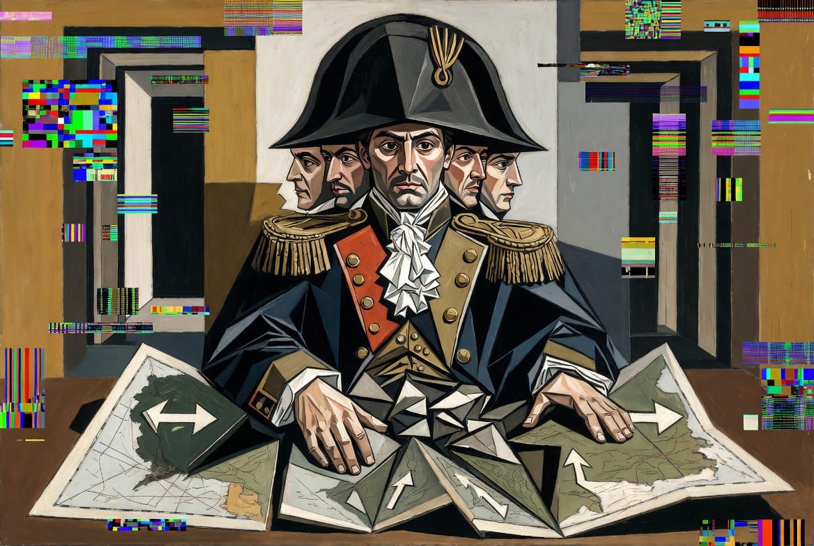C'est l'aveuglement de Napoléon devant la carte de Russie : il voit les flèches qu'il trace, pas l'hiver qui vient.