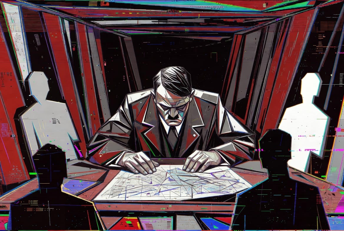 Et à la fin, le bunker de Berlin. Avril 1945. Hitler donne des ordres à des armées qui n'existent plus, déplace des divisions imaginaires sur des cartes, refuse d'admettre que tout est fini. Il meurt enfermé dans sa propre fiction, encerclé par le réel qu'il avait prétendu abolir.
